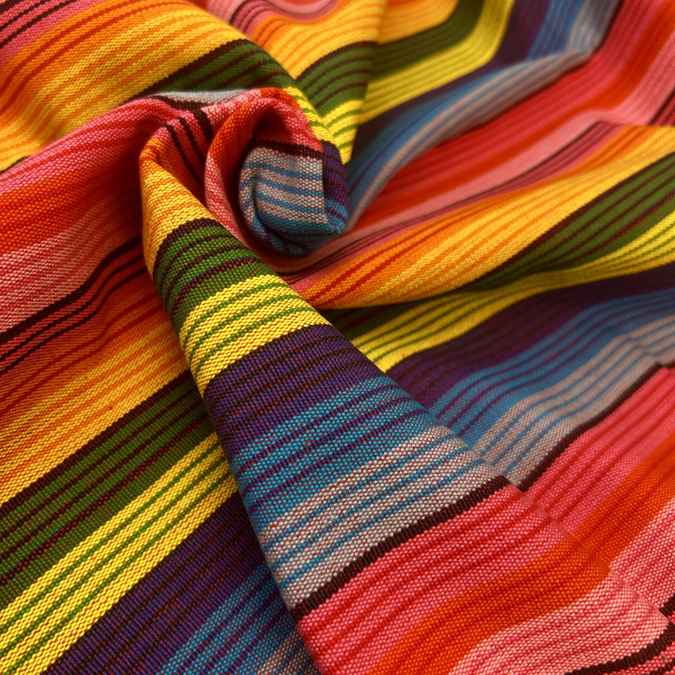 Le tissu Fiesta est une véritable explosion de couleurs qui répand immédiatement la bonne humeur. Son motif à rayures accrocheur dans des tons vifs comme le rouge, le jaune, l’orange, le bleu et le vert en fait le matériau parfait pour des projets joyeux et vivants. Grâce à sa composition 100 % coton, ce tissu est respirant, doux pour la peau et agréable à porter. Avec sa largeur de 140 cm, il est idéal comme tissu de carnaval pour les costumes, mais aussi pour les vêtements d’été, les sacs, les coussins ou d’autres projets de décoration créatifs.