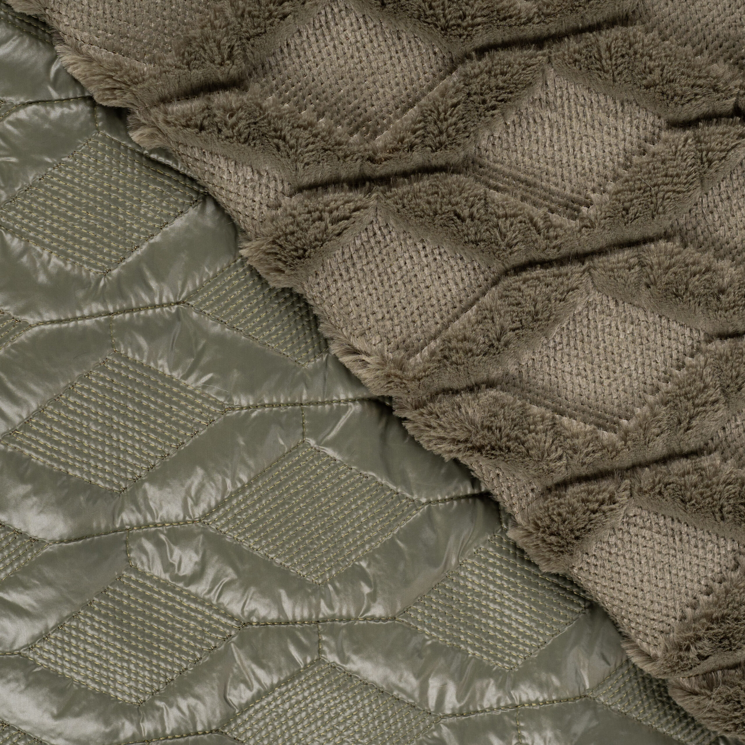 Disponible dans les couleurs olive, noir et beige, Quilt Fur Mabel s’intègre parfaitement dans les projets de mode et d’intérieur.