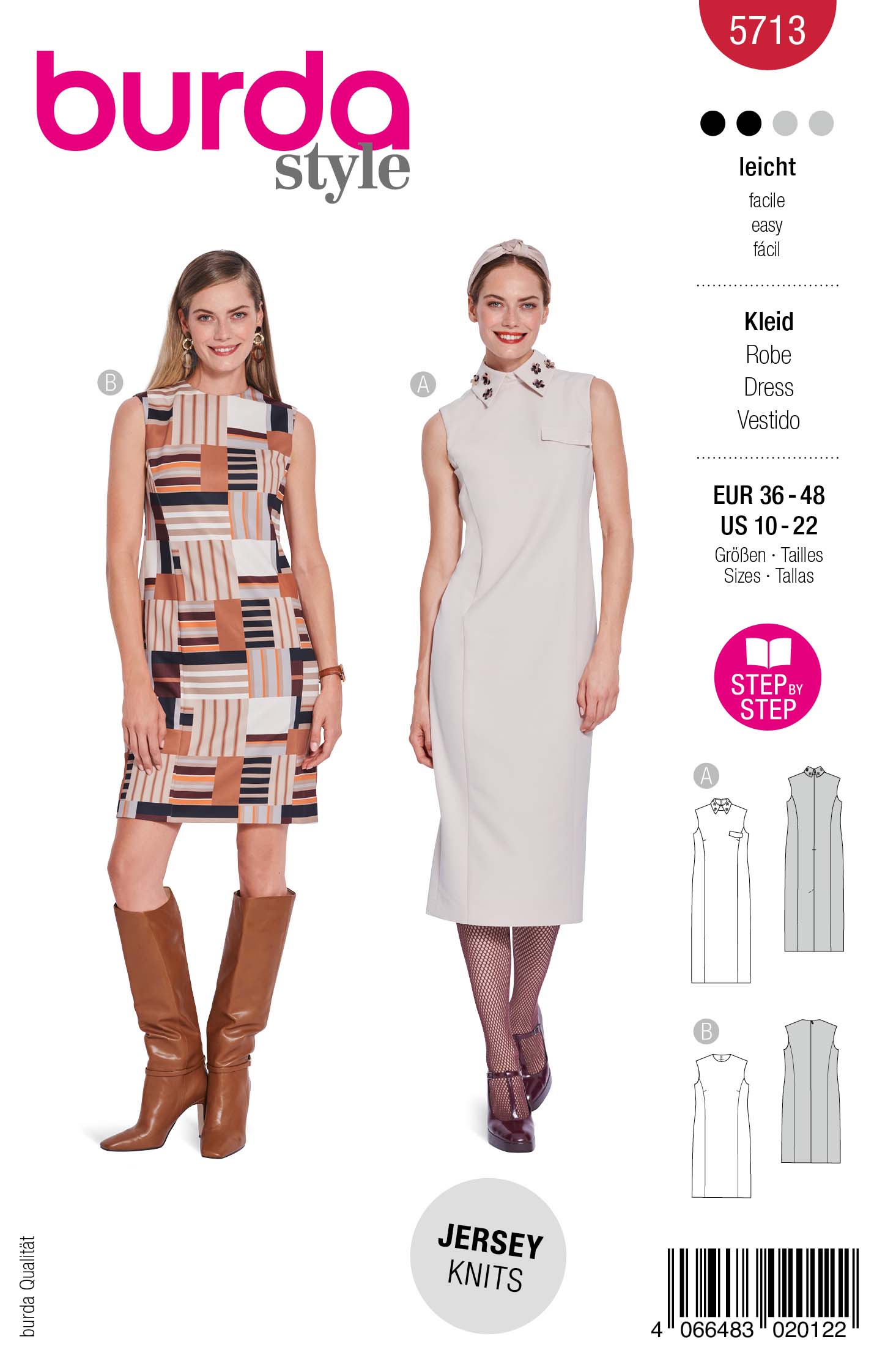 Entrambi i modelli sono facili da cucire e danno i migliori risultati con tessuti elastici come il jersey o tessuti per abiti con elastan. Ideali per ottenere rapidamente ottimi risultati e look femminili.