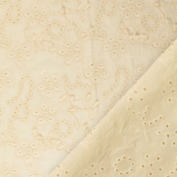 Sensazione: con 140 g/m², questo popeline è leggero e finemente tessuto, ma il ricamo gli conferisce un aspetto bello ed elegante.