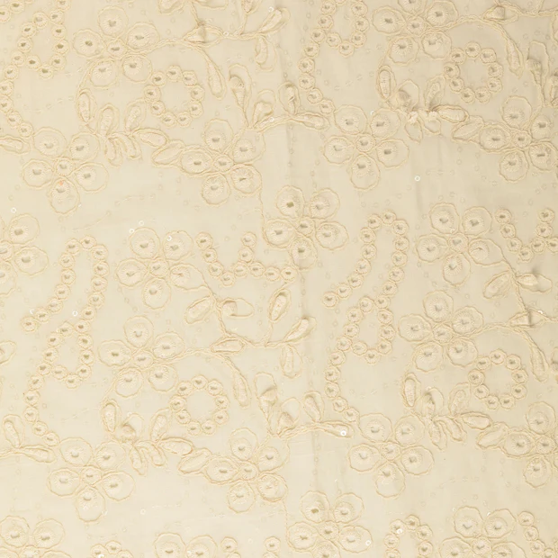 Create accenti glamour con il nostro lussuoso tessuto popeline di cotone Paillette. Questo tessuto moda di alta qualità in un delicato colore nudo combina la leggerezza del classico popeline con un intricato motivo floreale e sottili paillettes. Un tessuto che combina perfettamente eleganza e naturalezza.