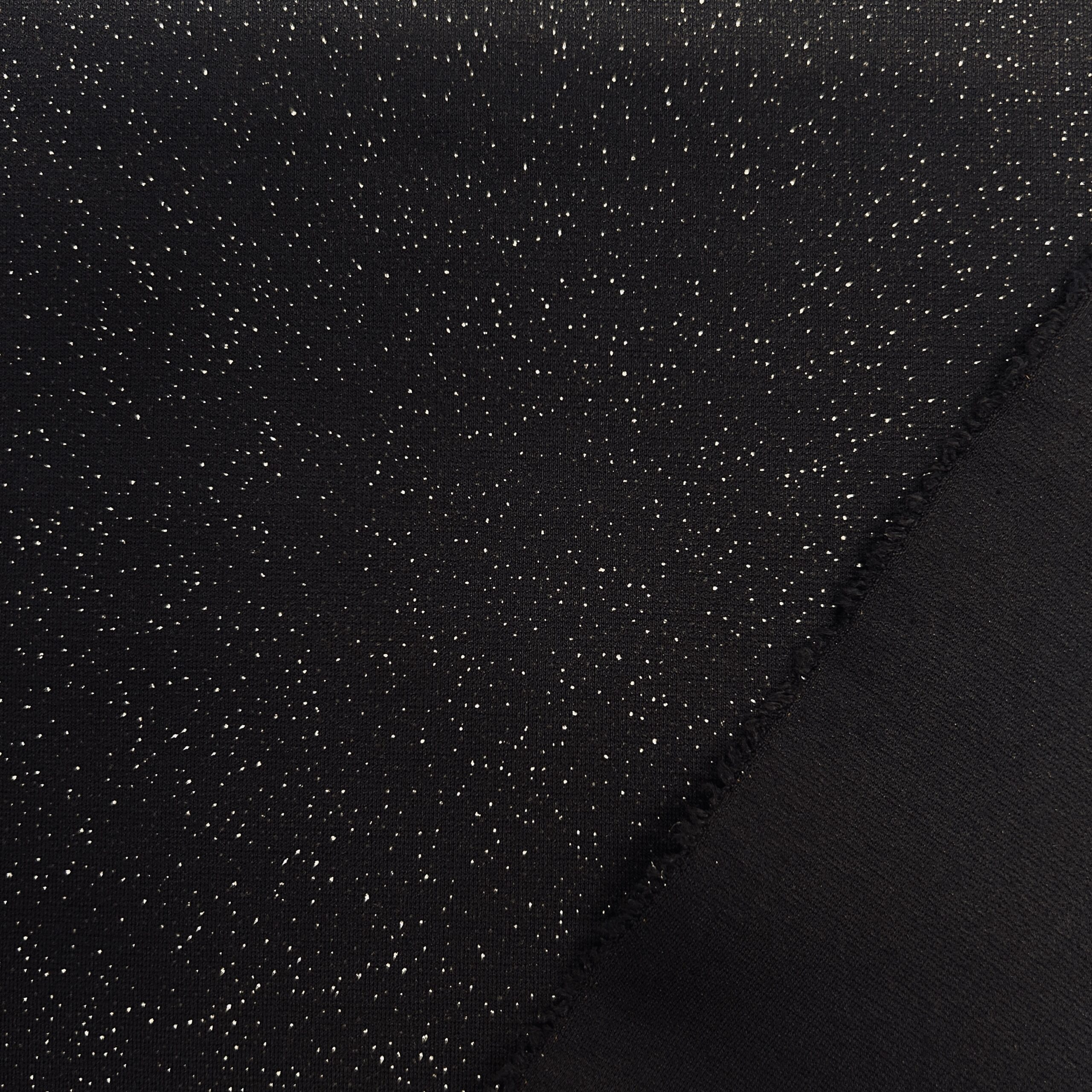 Cucite una moda elegante, dimensionalmente stabile e lussuosamente scintillante con il nostro Punto Milano ”Flitter Navy”. Questo jersey double-face di alta qualità si distingue per il suo profondo colore navy scuro e per l’effetto glitter o orpello incorporato, che conferisce al tessuto un aspetto sottile e sofisticato.